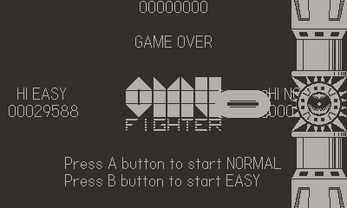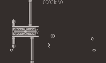 Things come at you from everywhere and you gotta fight them! This is a very straightforward game, shoot things, don't touch things, get points. Your jetpack is a very zippy thing, it's best to maneuver with quick taps of the d-pad. The buttons shoot left and right. You'll bounce off the screen edges. Pressing A and B at the same time drops a time bomb. This bomb does a lot of damage but due to its delay and small blast radius it's tricky to use.